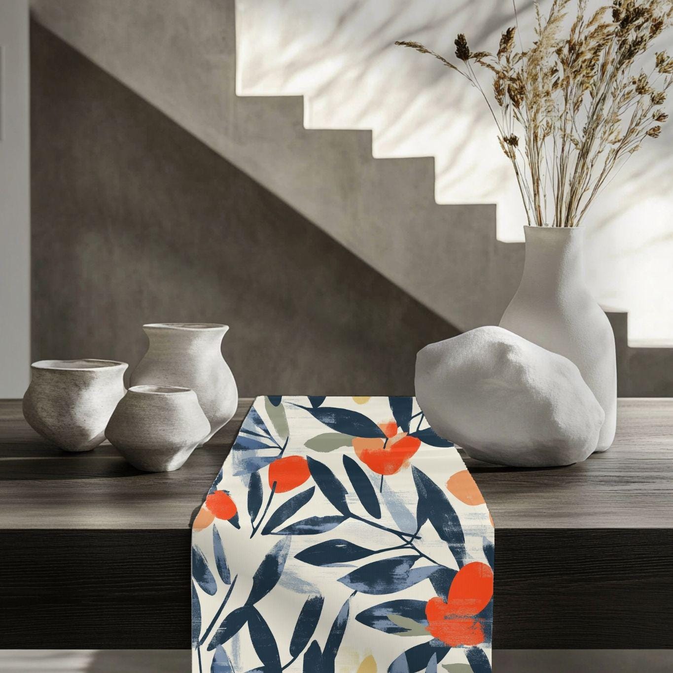 This runner suits small dinner parties, slow weekend breakfasts, or a refreshed seasonal mantle. It reads modern yet cozy — the kind of piece that makes a plain table feel curated and calm without shouting for attention.