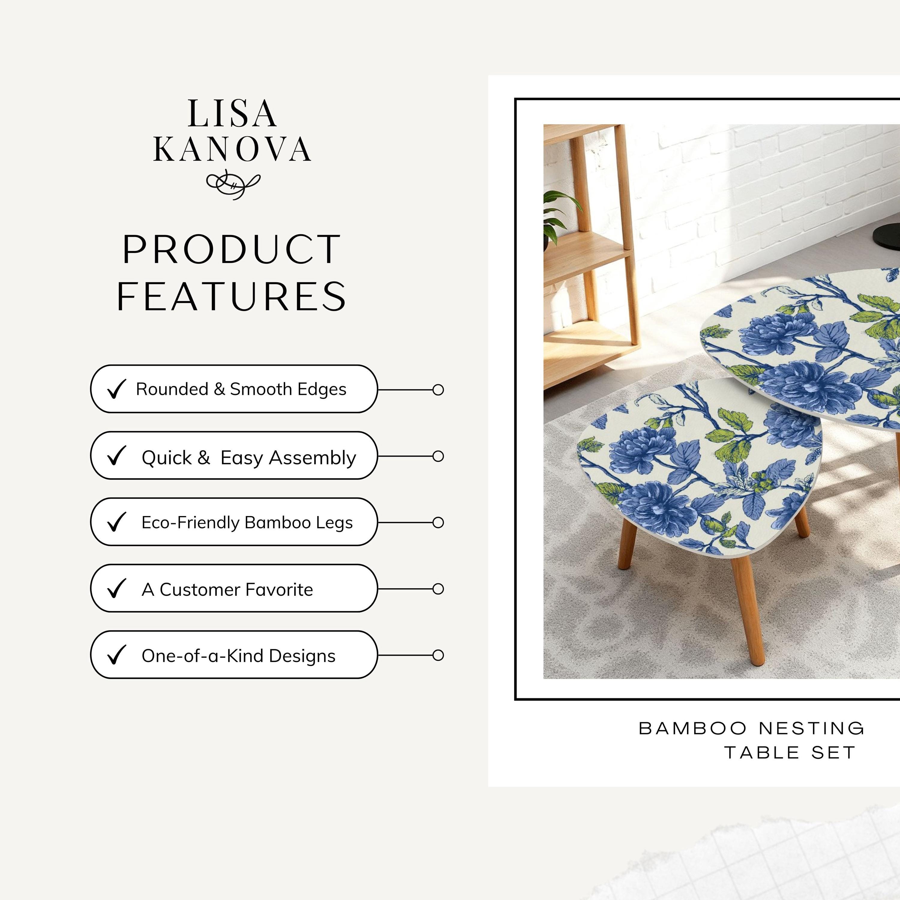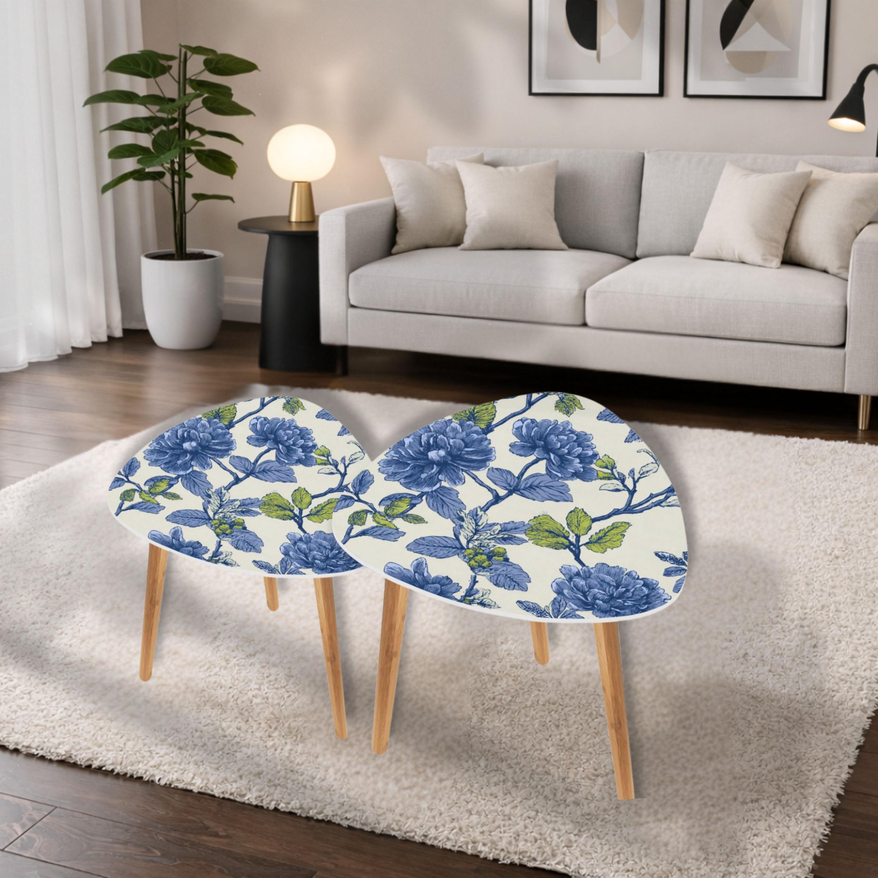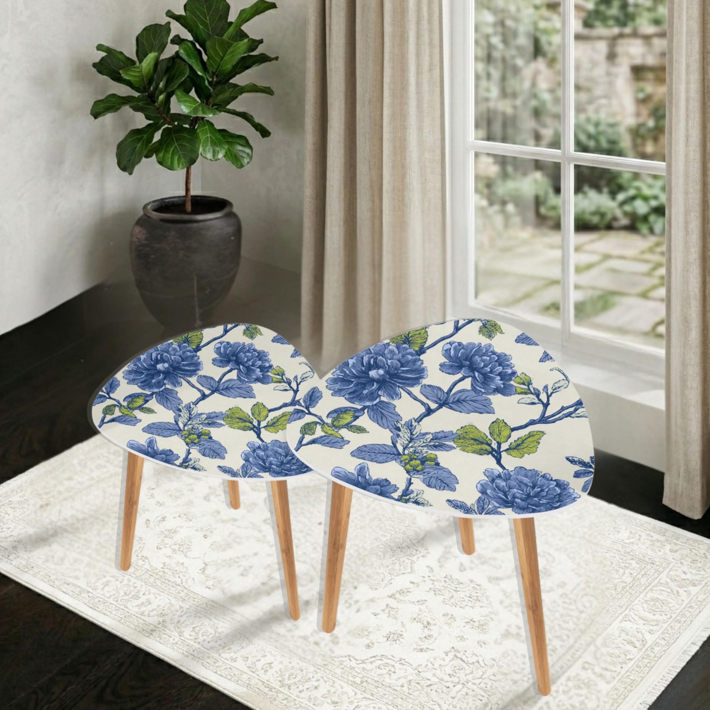 Add a touch of coastal charm to your living space with The Beach House Botanical Artisan Nesting Triangle Coffee Table Set of 2, made proudly in the USA. Perfect for those who love nature-inspired decor, these uniquely designed tables feature vibrant blue floral prints that evoke the serenity of the seaside. Whether you're hosting friends or enjoying a quiet evening, these nesting tables provide both style and functionality.