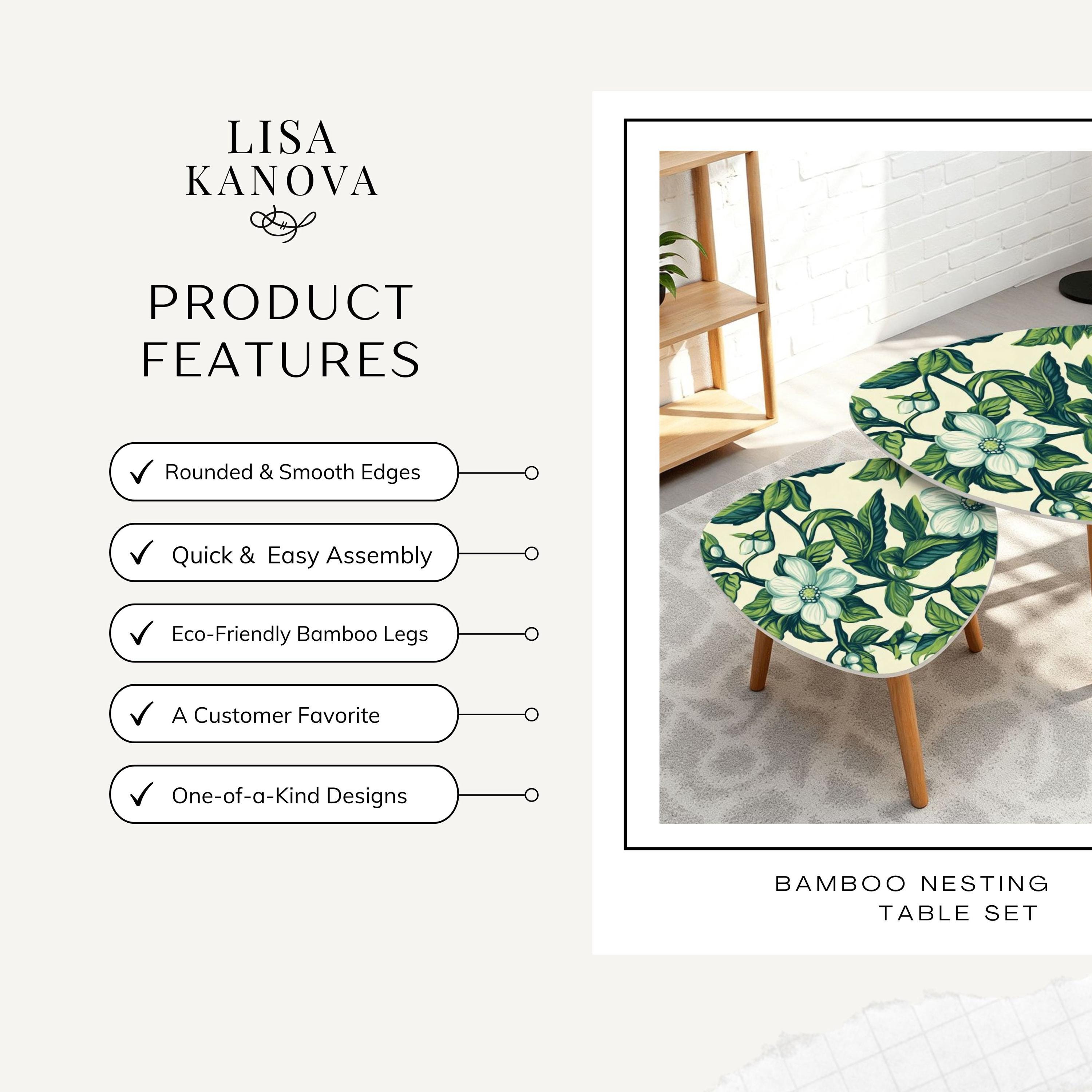 Elevate your living space with the Waltz in the Garden Triangle Coffee Table Set of 2, crafted with care in the USA. This charming set adds a touch of botanical elegance to any room, perfect for showcasing your favorite decor or enjoying a cozy coffee break.