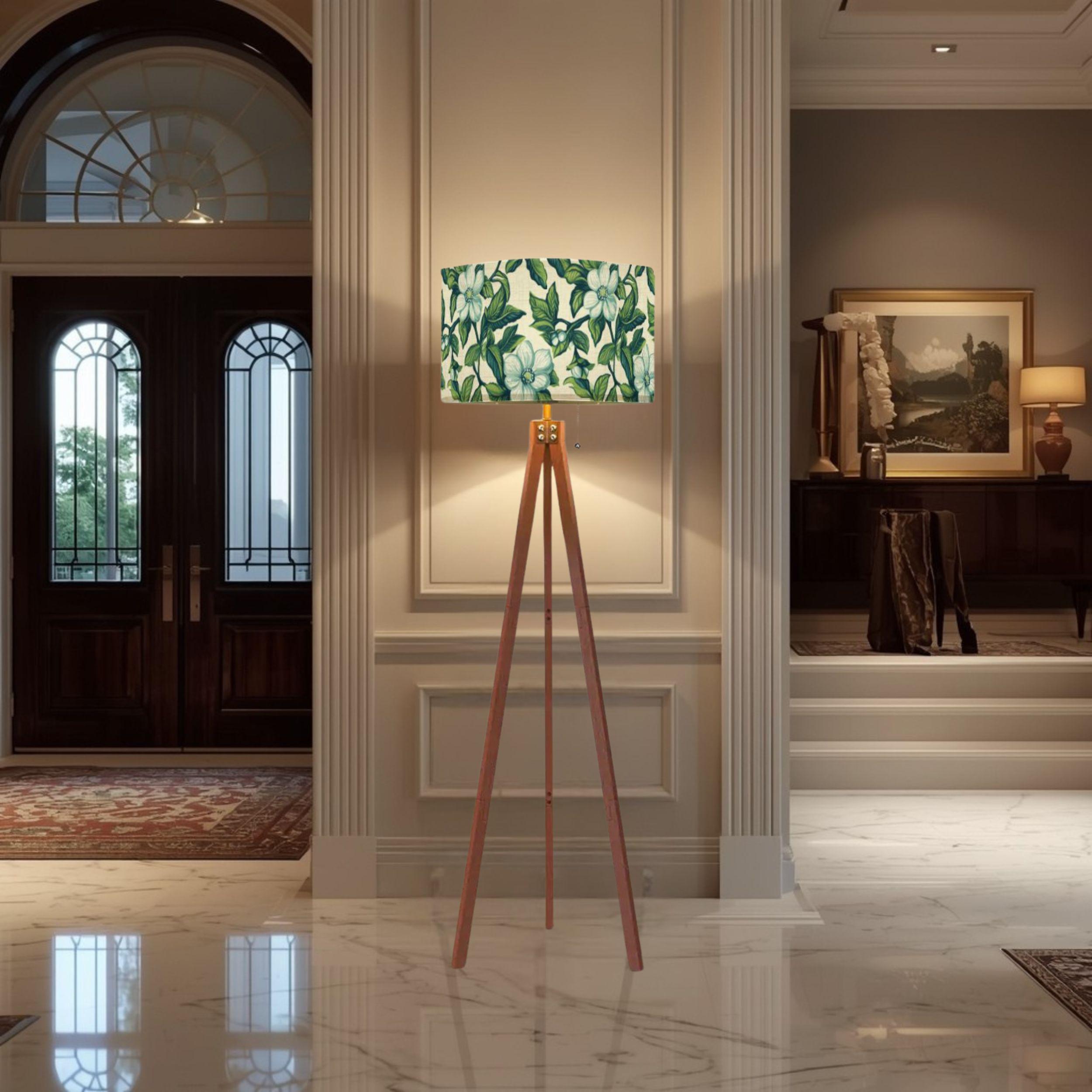 Add a touch of elegance and whimsy to your living space with the Waltz in the Garden Tripod Floor Lamp, expertly crafted and made in the USA. This stunning piece features a single-sided design with vibrant, UV-printed floral artwork that brings a lively garden scene into any room. Its classic tripod base offers stability and a modern aesthetic, making it a versatile addition to your home decor.