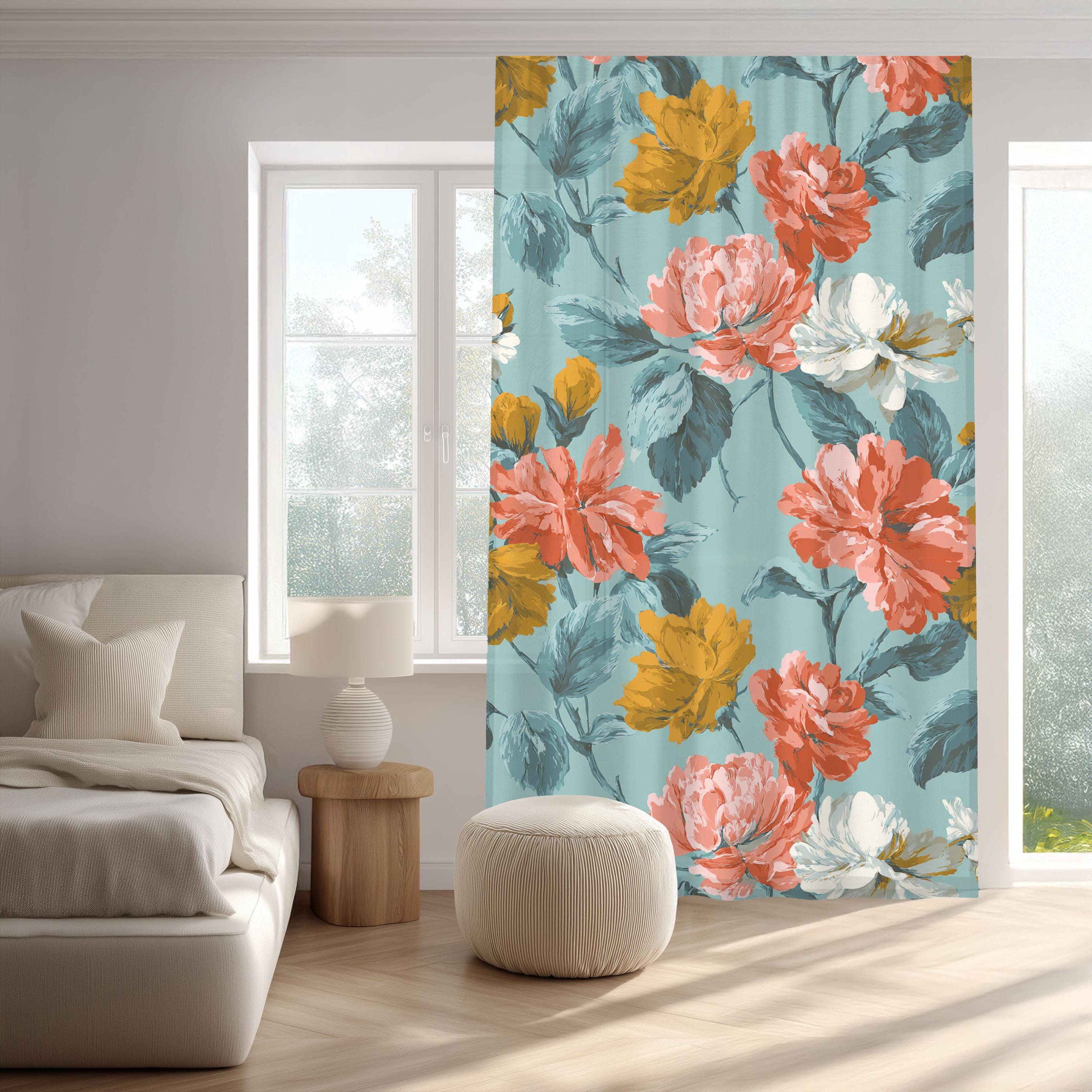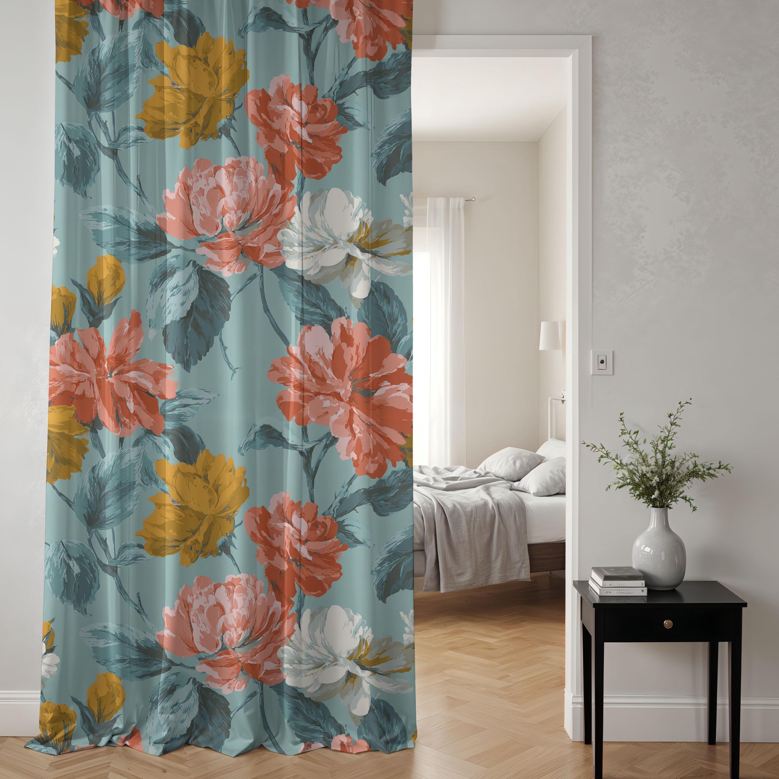 Designed for those who appreciate bespoke artistry, each panel features a mural-scale floral composition inspired by the serene beauty of Provence. The oversized, off-center design creates a "Mural Window" effect that commands attention, adding depth and sophistication to any room. Whether you’re aiming for a light, airy ambiance with sheer fabric or a cozy, intimate environment with blackout options, these curtains bring an elegant, artistic touch to your window treatment.
