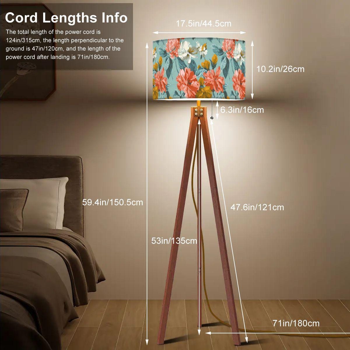 Standing at a total height of 59.4 inches, the lamp offers a warm and inviting glow, creating a relaxing atmosphere in your home. The lampshade measures 10.2 inches in height and 17.5 inches in diameter, providing ample light diffusion. The long 124-inch cord, with 71 inches from the base, ensures flexible placement options to suit your space (please note slight variations of up to 4 inches due to production).