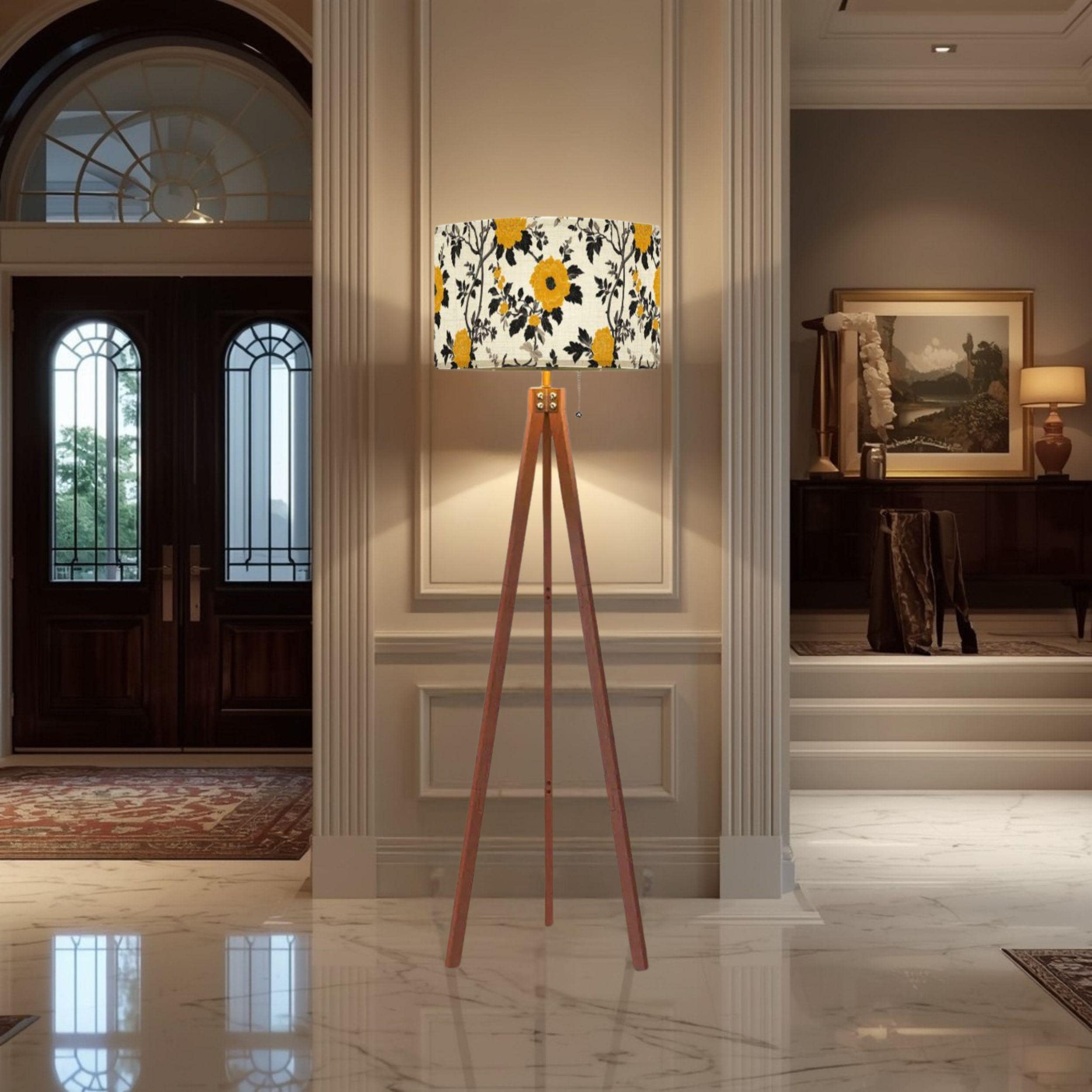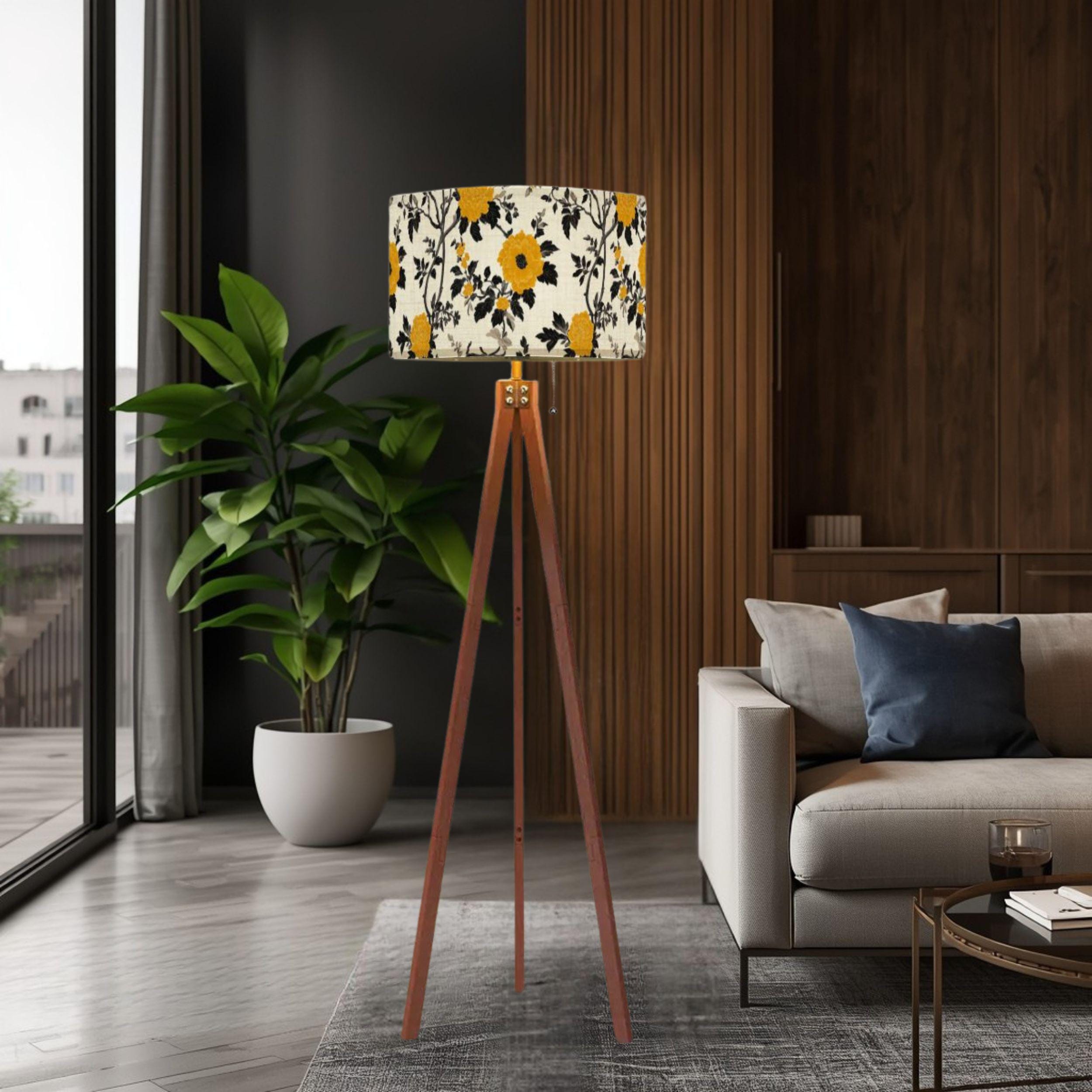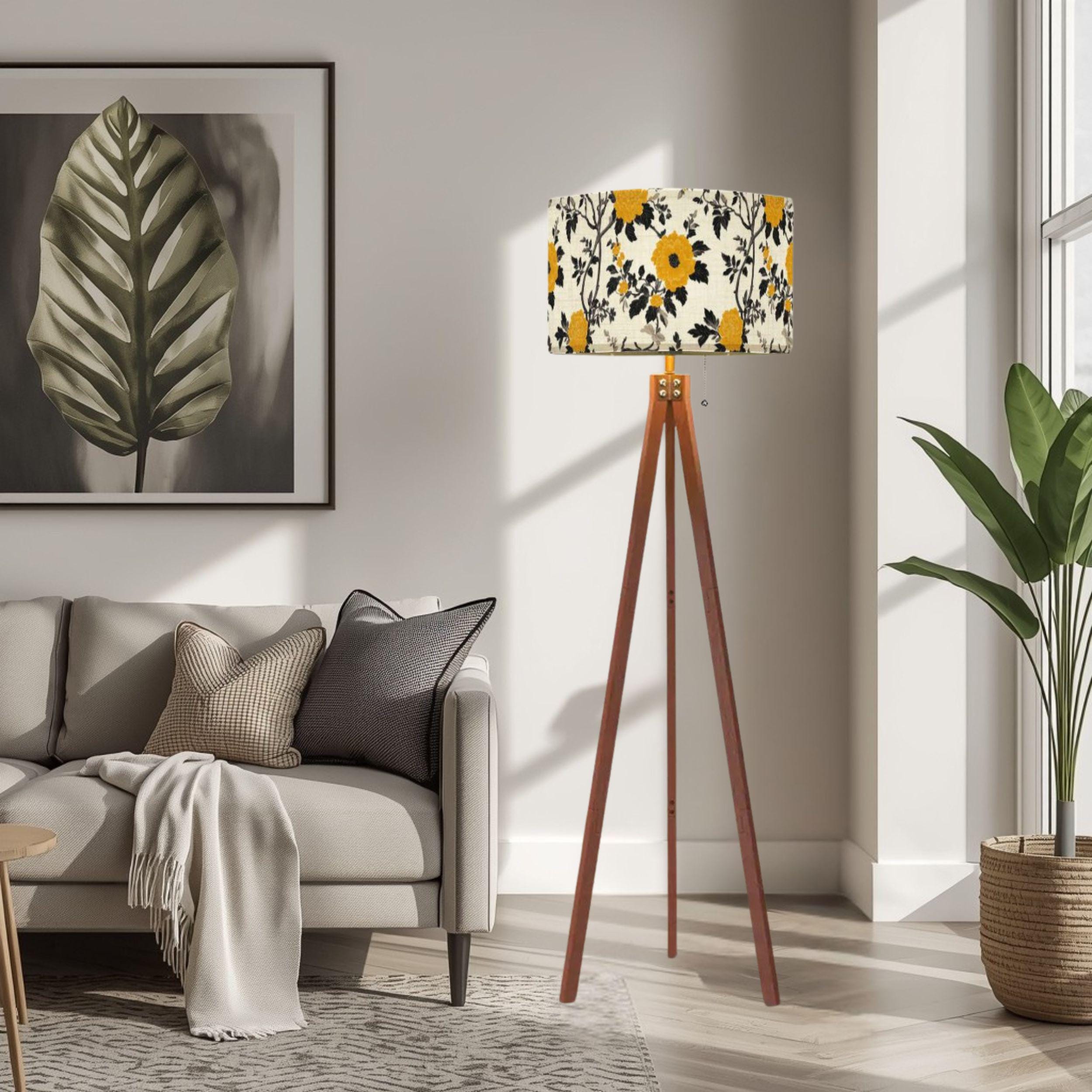 Illuminate your space with the charming Lanterns at the Summer Estate Tripod Floor Lamp, crafted proudly in the USA. This stylish and functional piece features a stunning linen-textured lampshade adorned with vibrant yellow floral patterns that bring a fresh, summery vibe to any room. Perfect for living rooms, bedrooms, or cozy reading nooks, this lamp combines artistic design with practical lighting.