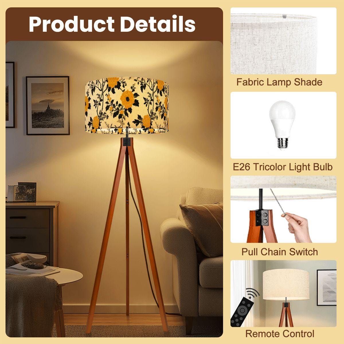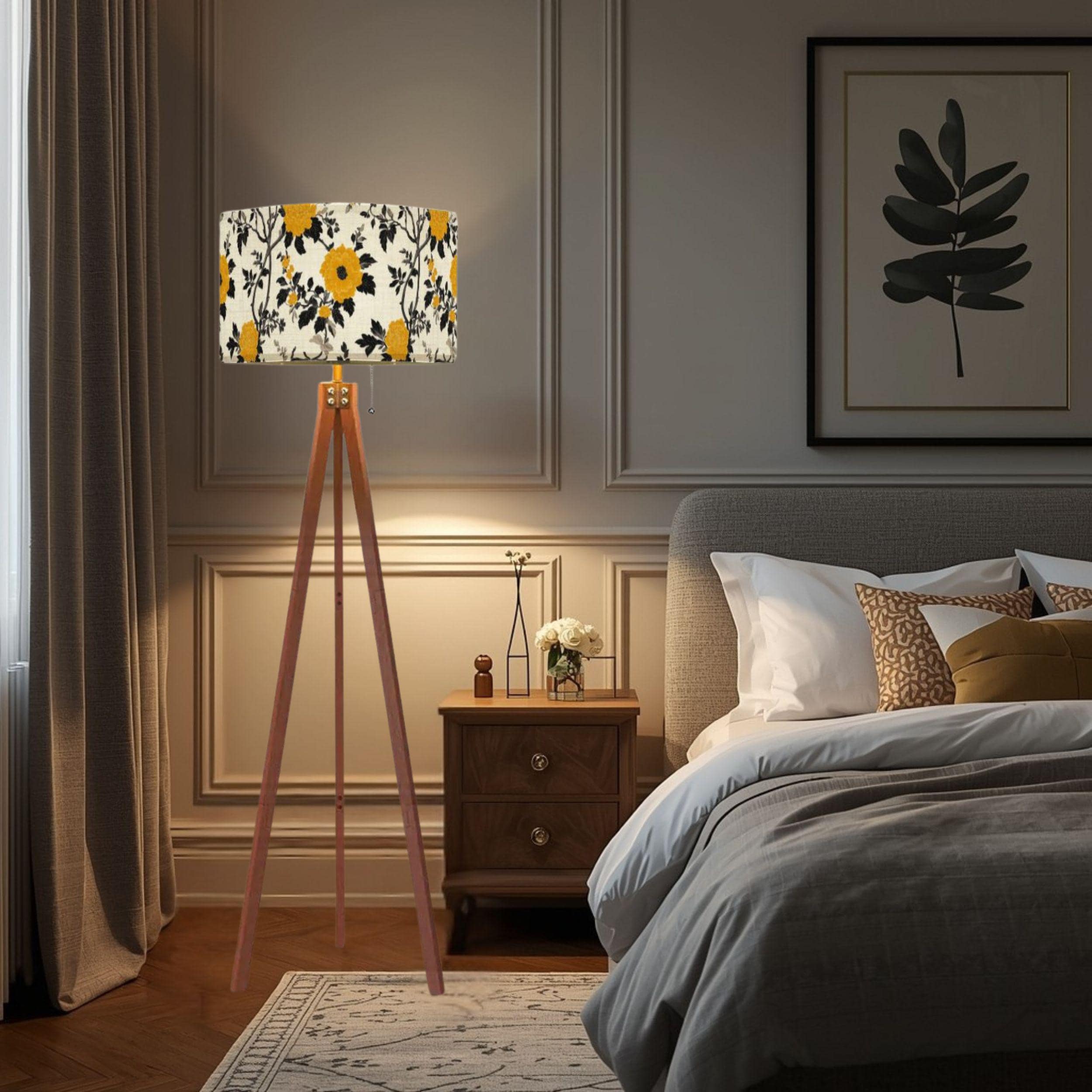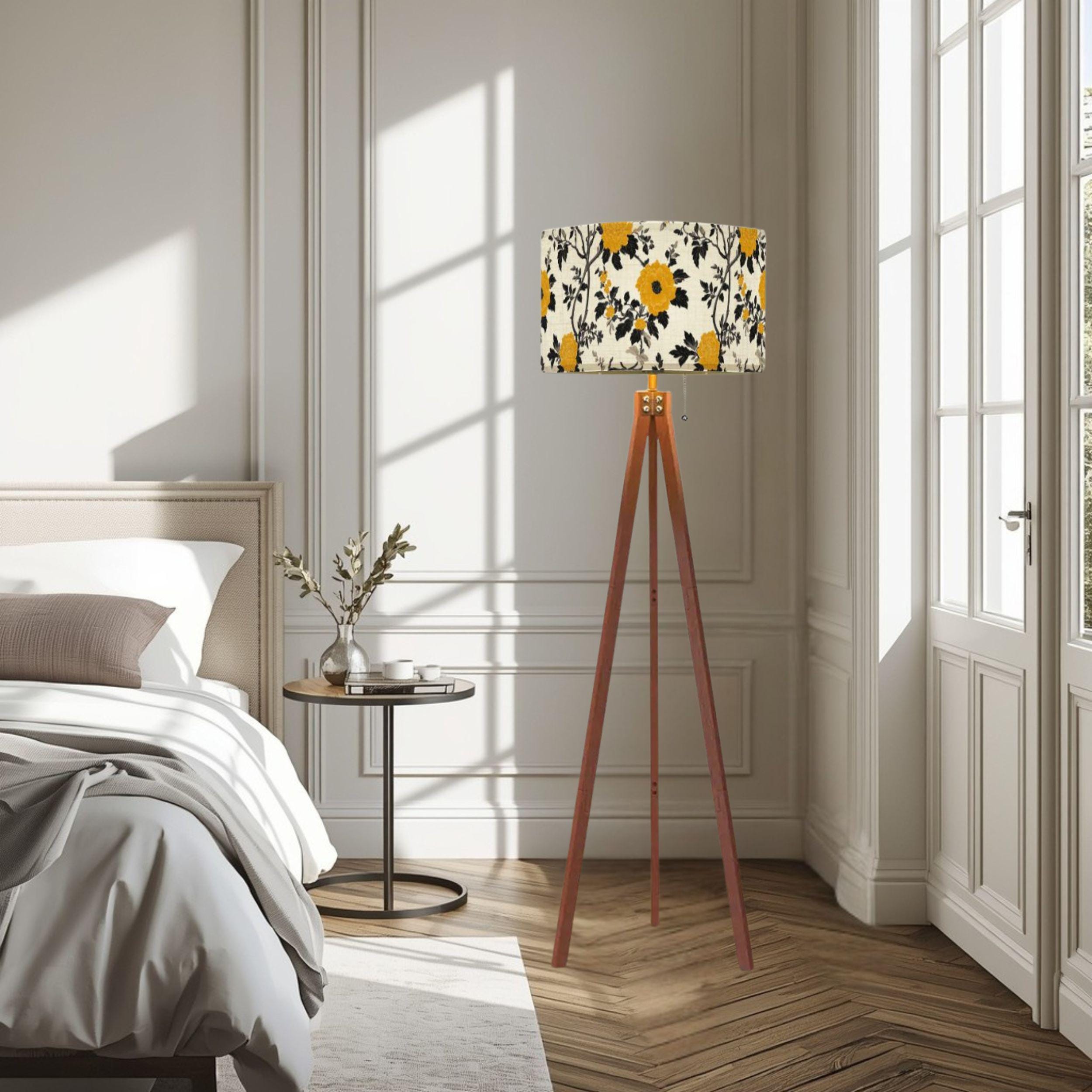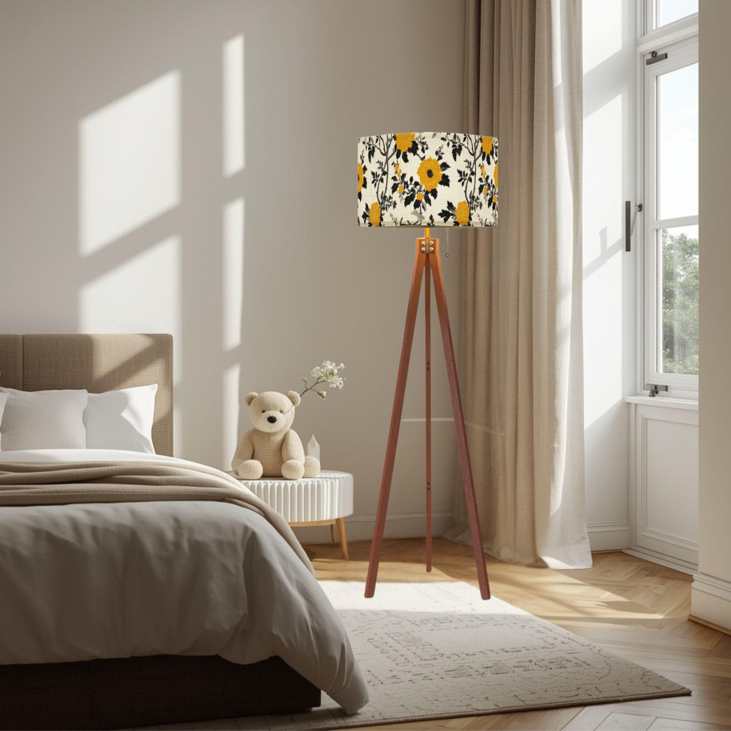 Illuminate your space with the charming Lanterns at the Summer Estate Tripod Floor Lamp, crafted proudly in the USA. This stylish and functional piece features a stunning linen-textured lampshade adorned with vibrant yellow floral patterns that bring a fresh, summery vibe to any room. Perfect for living rooms, bedrooms, or cozy reading nooks, this lamp combines artistic design with practical lighting.