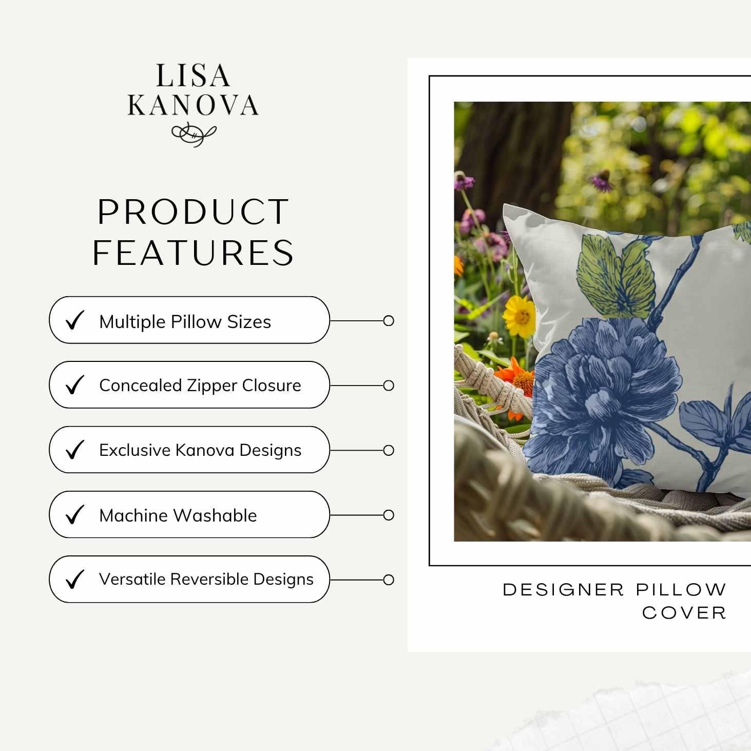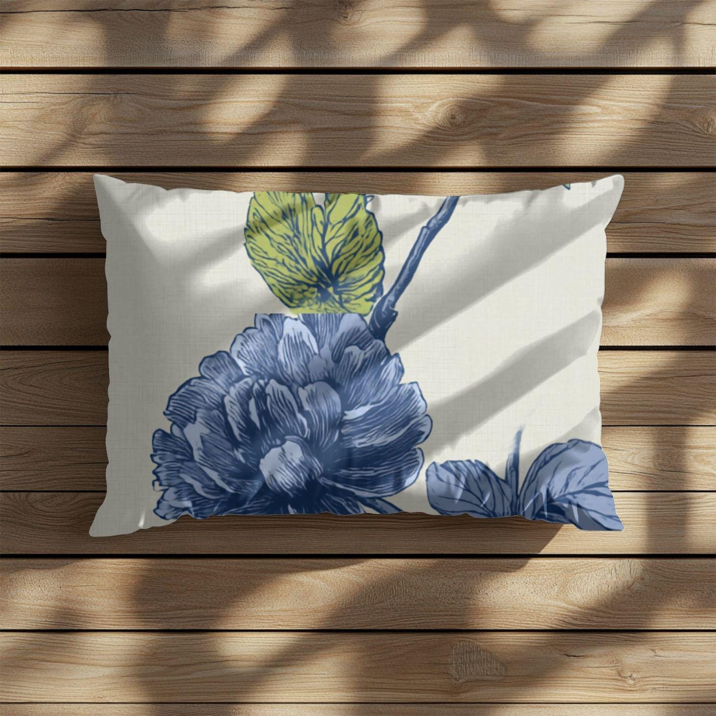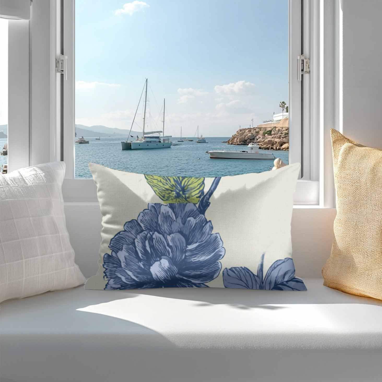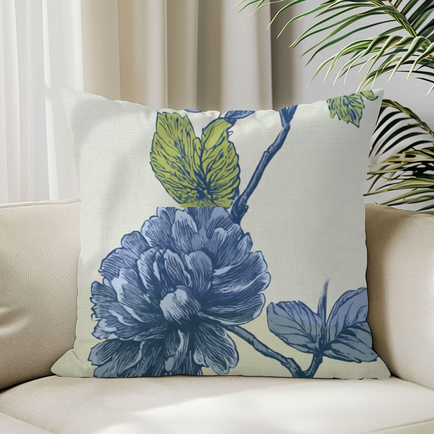 A decorative throw pillow cover that brings a calm, vintage-inspired bloom into living spaces. The double-sided print shows detailed blue floral illustrations with soft green leaf accents on a light, textured background — like an old botanical print updated for modern homes. Lightweight yet durable polyester keeps the colors bright and the shape intact. The hidden zipper lets the cover slip on and off easily for styling or cleaning. Available in multiple sizes to layer on sofas, beds, or cozy reading nooks, this cover adds a quiet, artful touch that complements neutral and coastal palettes.