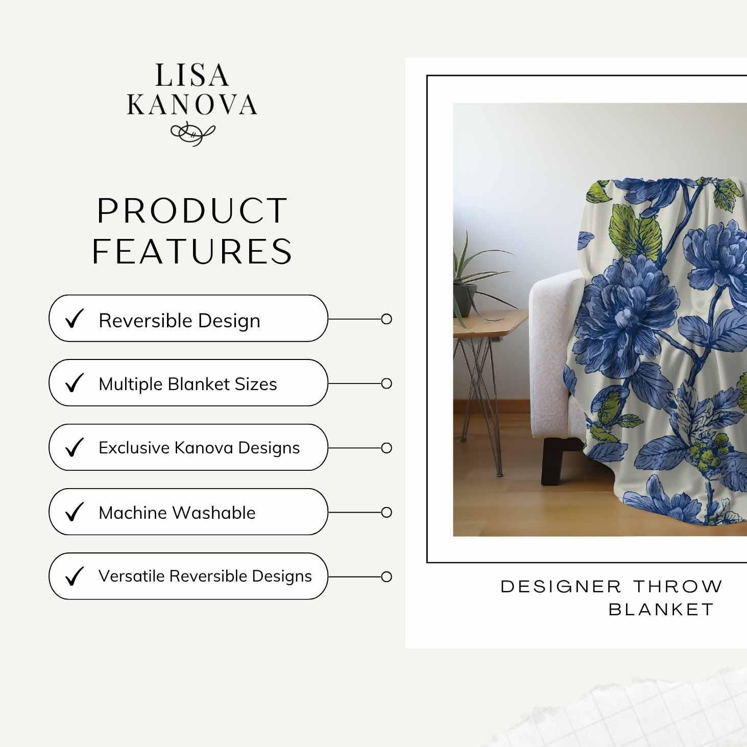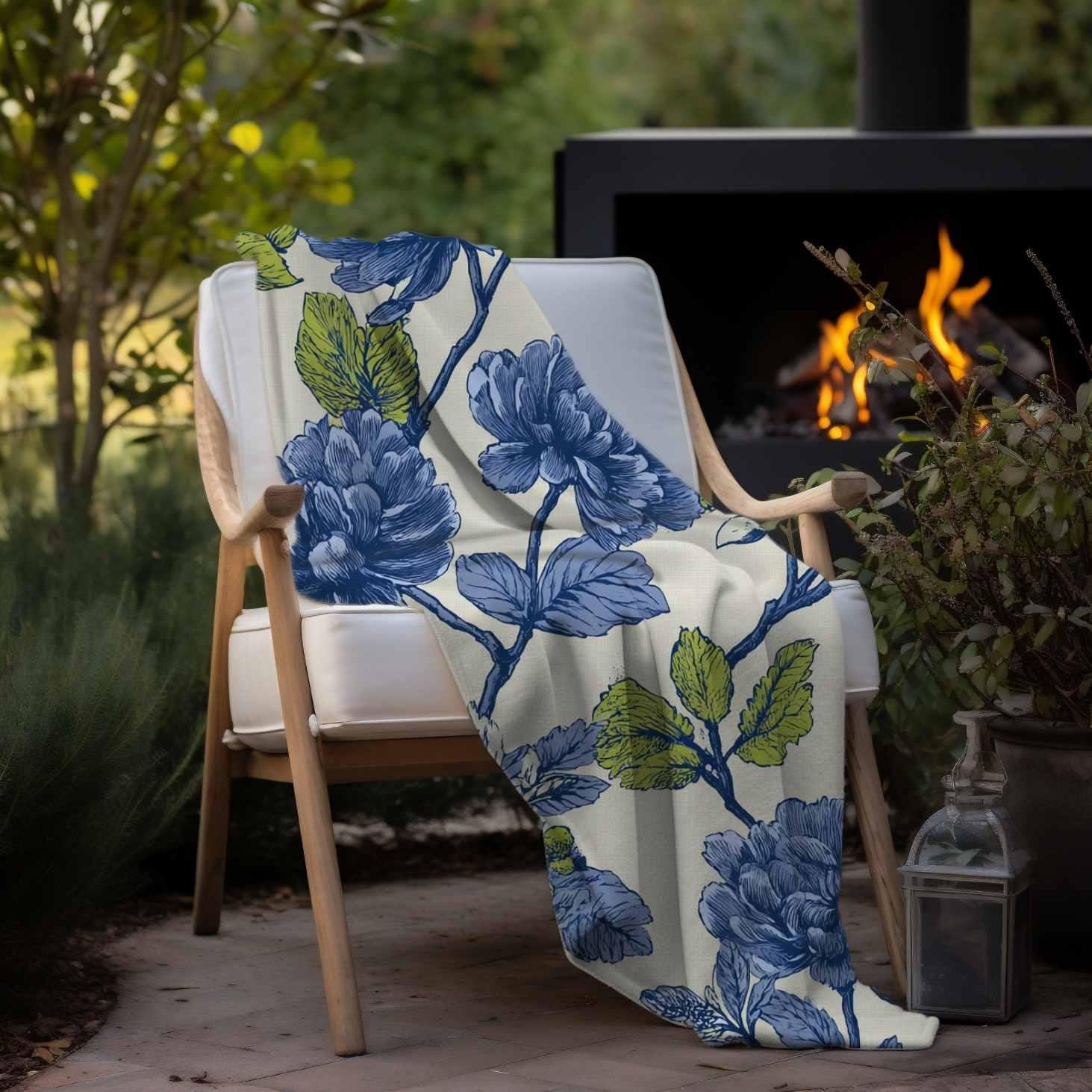Wrap yourself in a soft, velveteen embrace that feels like a quiet morning in a sunlit garden. This two-sided microfiber blanket pairs painterly blue florals with a subtle, vintage-inspired geometric reverse — light, calming, and thoughtfully detailed. It lays gently over a lap while you read, brightens a guest bed, or becomes the extra layer on cool porch evenings. The plush pile and vivid printing hold their color through everyday use, while hemmed edges keep the fabric neat and resilient. For someone who cherishes calm interiors and floral motifs, this blanket adds a soothing, lived-in elegance without fuss.