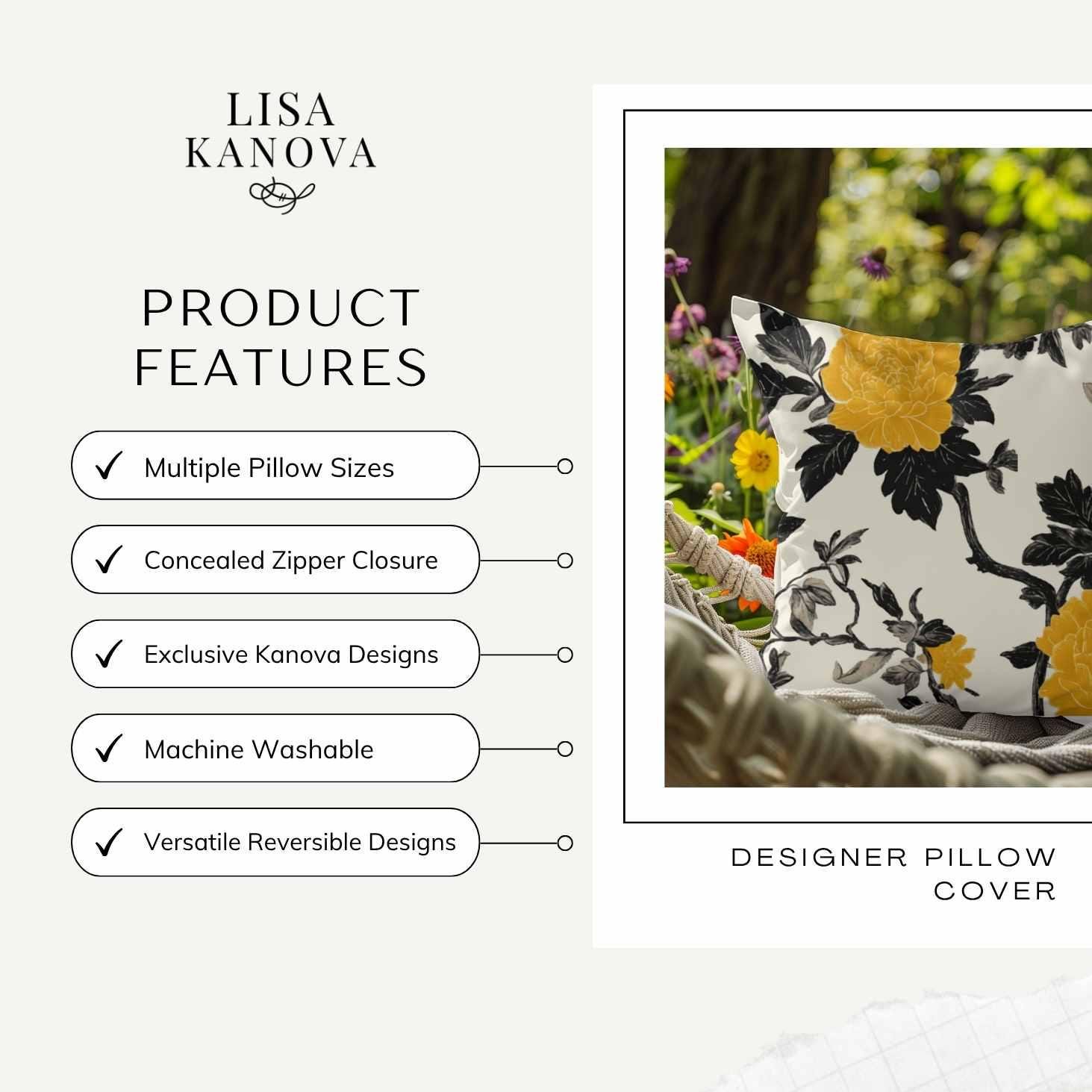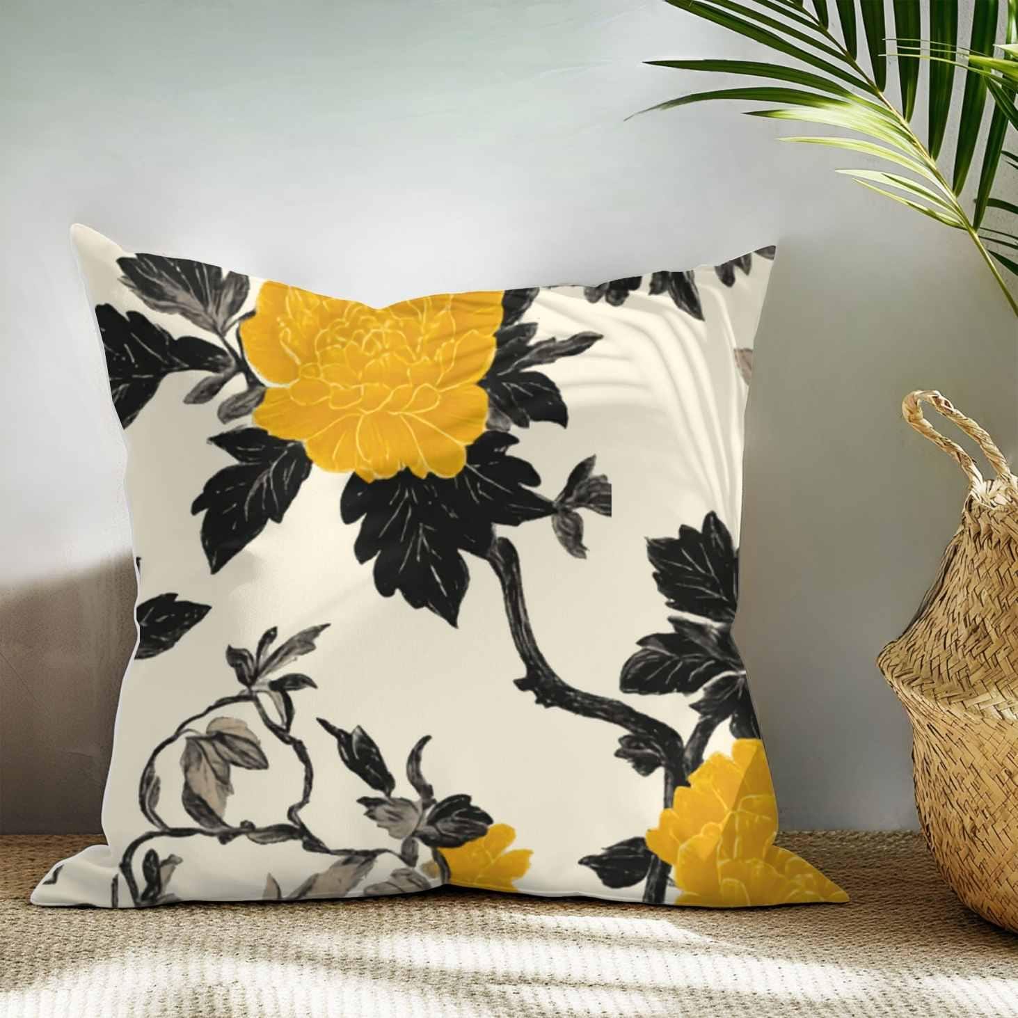 A refined throw pillow cover that brings a quiet, modern floral statement to your living space. Soft polyester keeps the silhouette crisp while a bold yellow bloom against charcoal foliage draws the eye without shouting. The double-sided print ensures the design reads beautifully from any angle, and the hidden zipper keeps lines clean. Choose from four sizes to layer on sofas, window seats, or your favorite reading nook and let the cover freshen a room with subtle contrast and warm color.