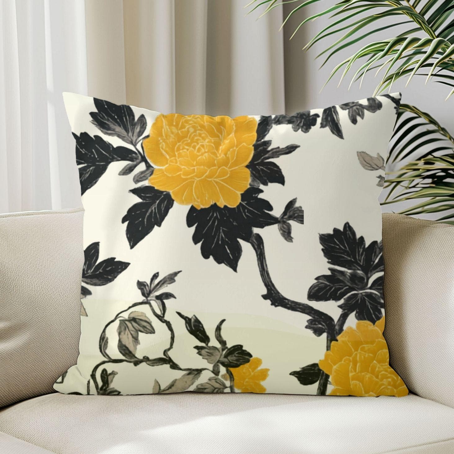 A refined throw pillow cover that brings a quiet, modern floral statement to your living space. Soft polyester keeps the silhouette crisp while a bold yellow bloom against charcoal foliage draws the eye without shouting. The double-sided print ensures the design reads beautifully from any angle, and the hidden zipper keeps lines clean. Choose from four sizes to layer on sofas, window seats, or your favorite reading nook and let the cover freshen a room with subtle contrast and warm color.