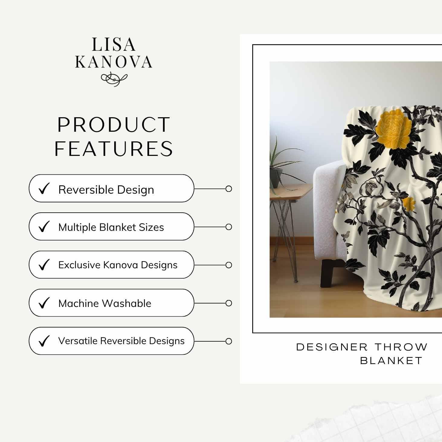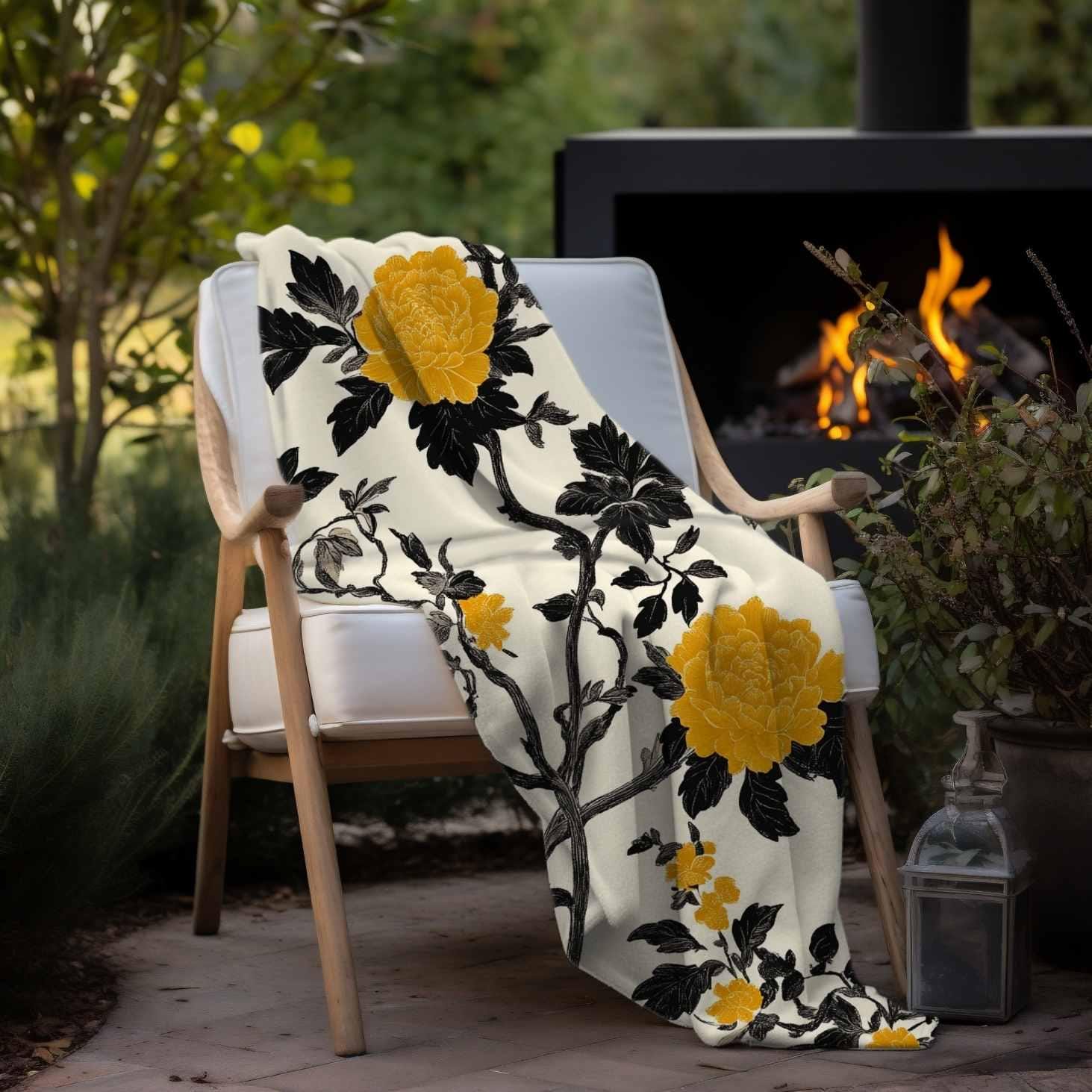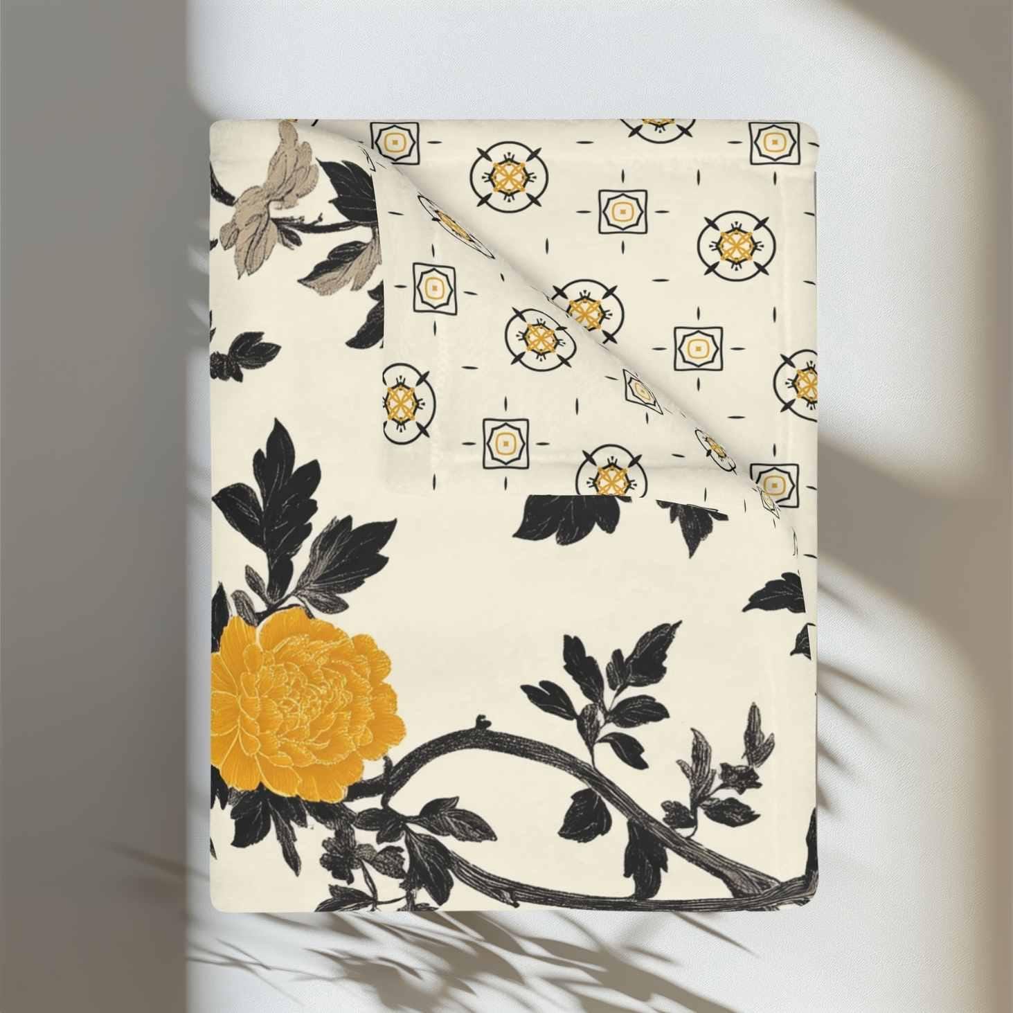 Wrap yourself in a soft, velvety layer that feels like a quiet afternoon on a sunlit porch. This two-sided microfiber blanket pairs a warm, vintage floral with a subtle geometric reverse — the bold mustard blooms and inky vines bring personality, while the muted pattern on the other side keeps things calm and versatile. Lightweight yet plush, it drapes easily over a sofa, tucks around shoulders during a reading session, or adds a finished look to a guest bed. The hemmed edges and vibrant printing hold the design together so the blanket keeps its color and shape through regular use. It’s made to be lived with: cozy, resilient, and quietly stylish.