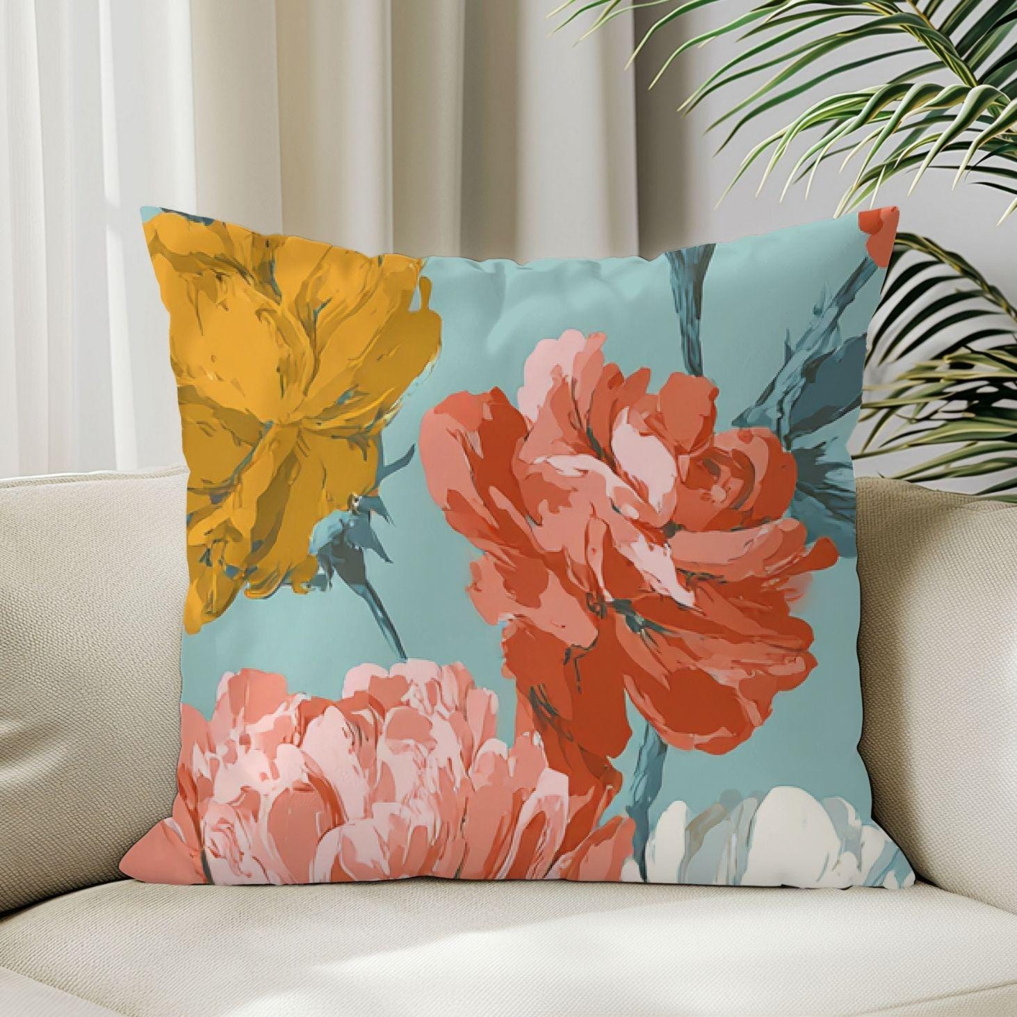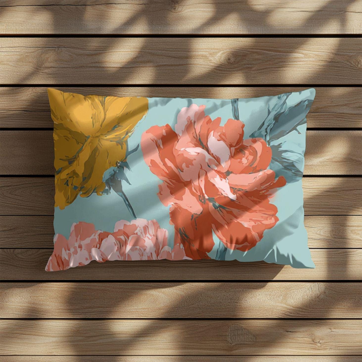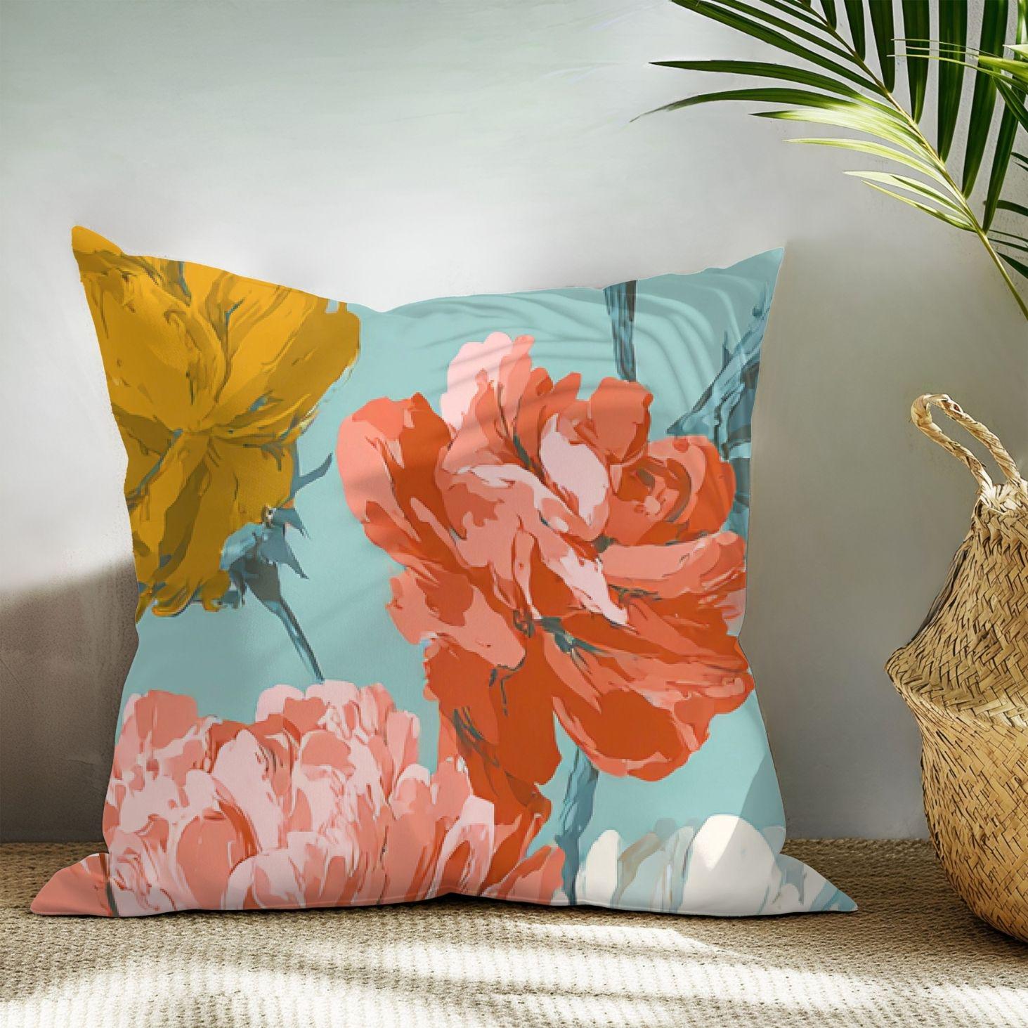 A soft, floral throw pillow cover that brings a calm, vintage-inspired warmth to living rooms and cozy nooks. The watercolor-like blooms float across a muted teal background, balanced by a complementary striped reverse for subtle pattern play. It slips on easily with a hidden zipper and keeps its shape thanks to durable polyester weave. Use it to refresh a sofa, layer on a bed, or add a gentle, artistic touch to a reading corner — the colors hold up wash after wash and read like a quiet accent in rustic, cottage, or modern eclectic spaces.