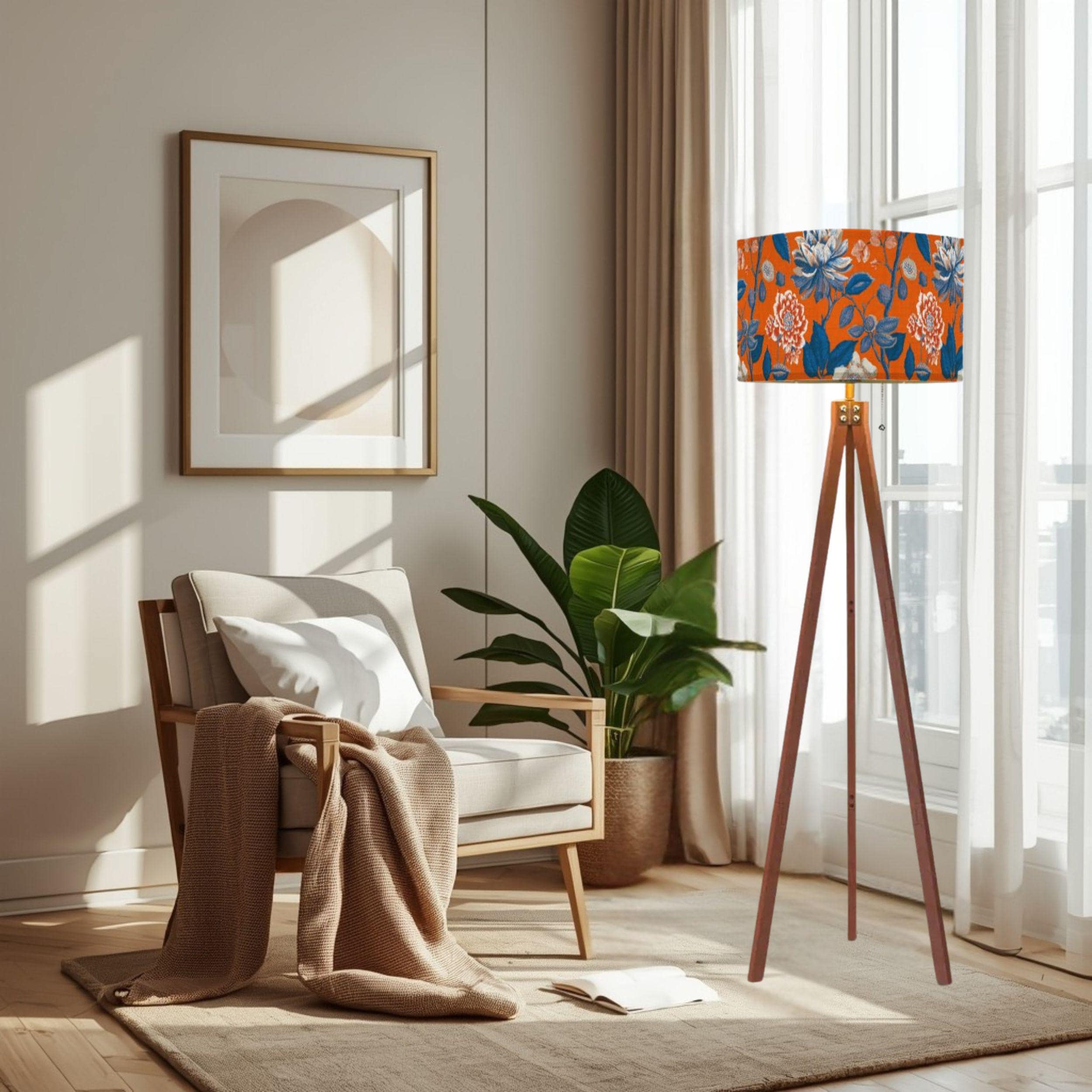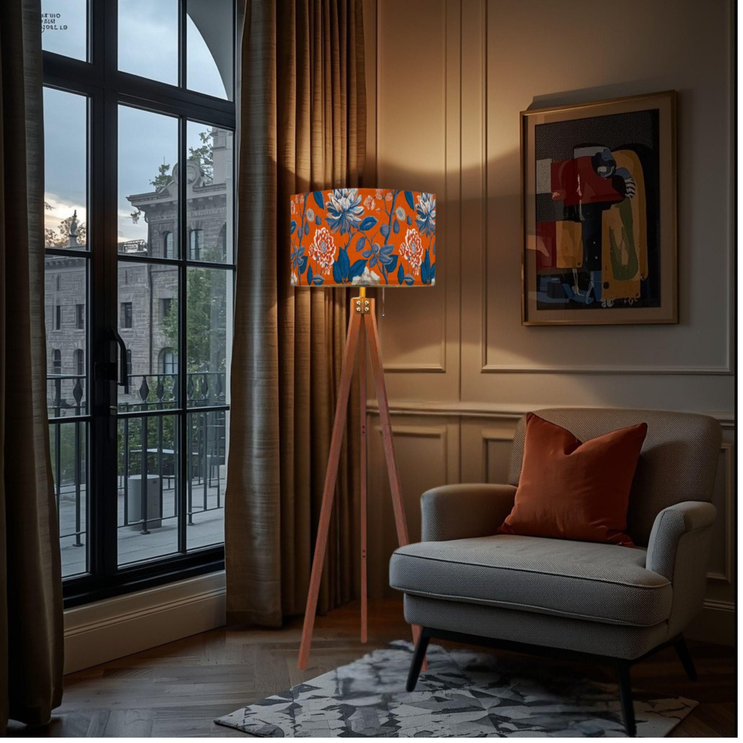 Illuminate your space with the Sunset at the Orangerie Tripod Floor Lamp, a beautifully crafted piece made in the USA that combines functional lighting with artistic flair. Standing at a total height of 59.4 inches, this elegant lamp is perfect for adding warmth and style to your living room, bedroom, or reading nook. The linen-textured lampshade, measuring 10.2 inches in height and 17.5 inches in diameter, features a vibrant sunset-inspired design, printed with high-quality UV printing that ensures durability and vivid colors.