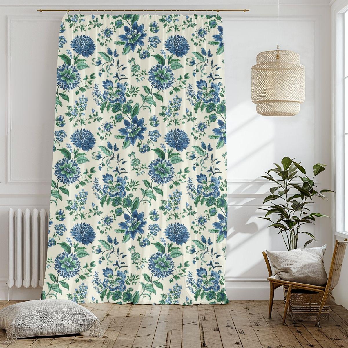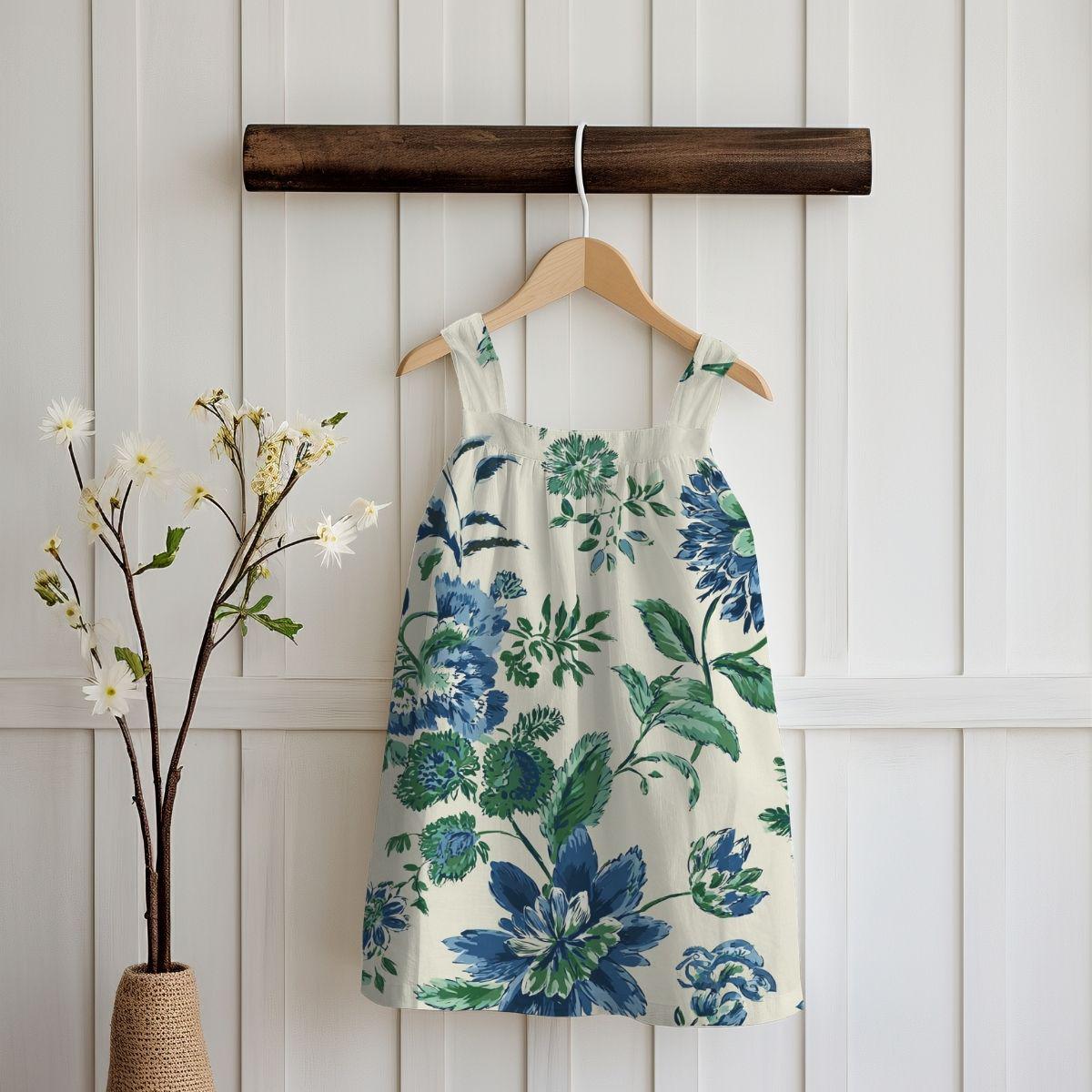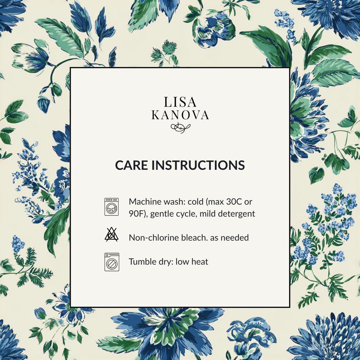 Soft, breathable fabric meets timeless floral charm. This lightweight Pima cotton piece carries a painterly blue-and-green blossom print on a warm ivory ground. It drapes gently and feels cool against the skin, inviting slow afternoons with a book or sunlit walks through a neighborhood lined with gardens. The print reads like watercolor—loose stems, layered petals, and delicate sprigs—giving the piece an artisanal, vintage-inspired mood that works equally well layered or on its own. Wear it when you want a subtle, cultivated touch that suggests calm confidence and an appreciation for hand-painted pattern-making.