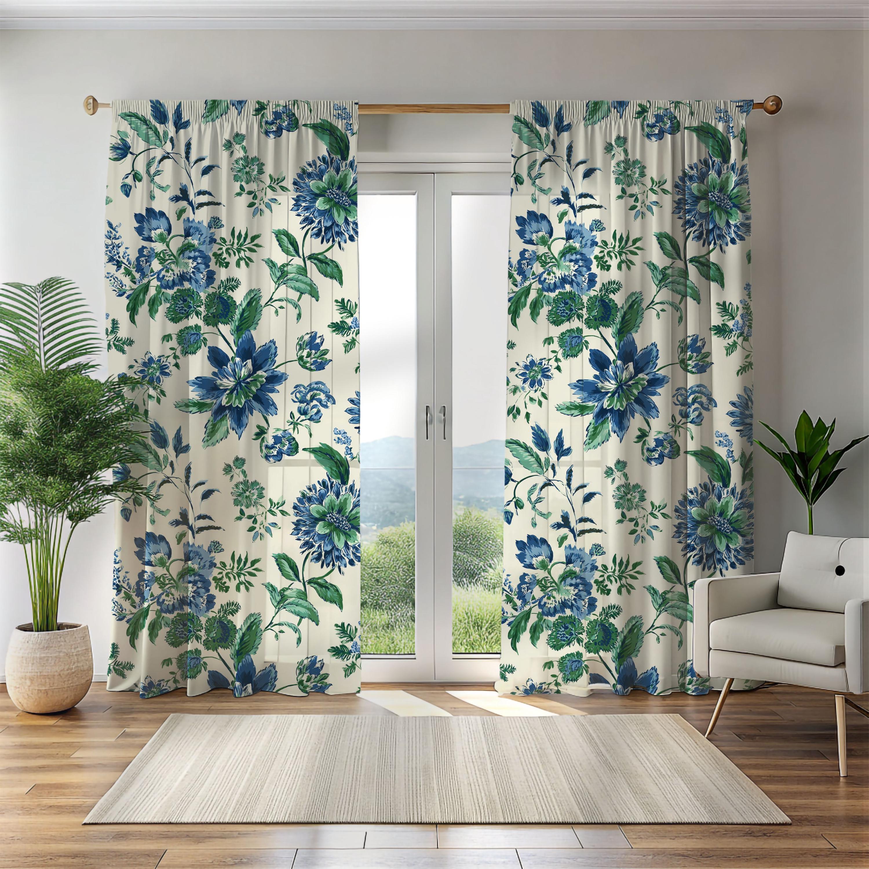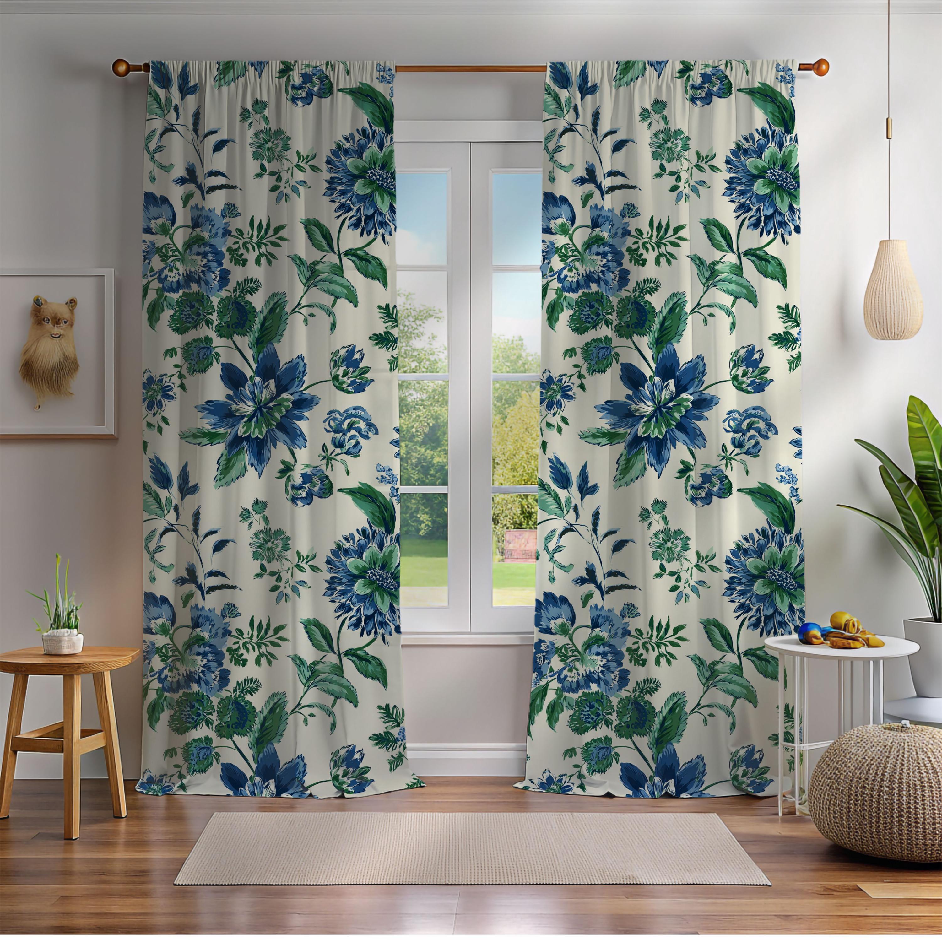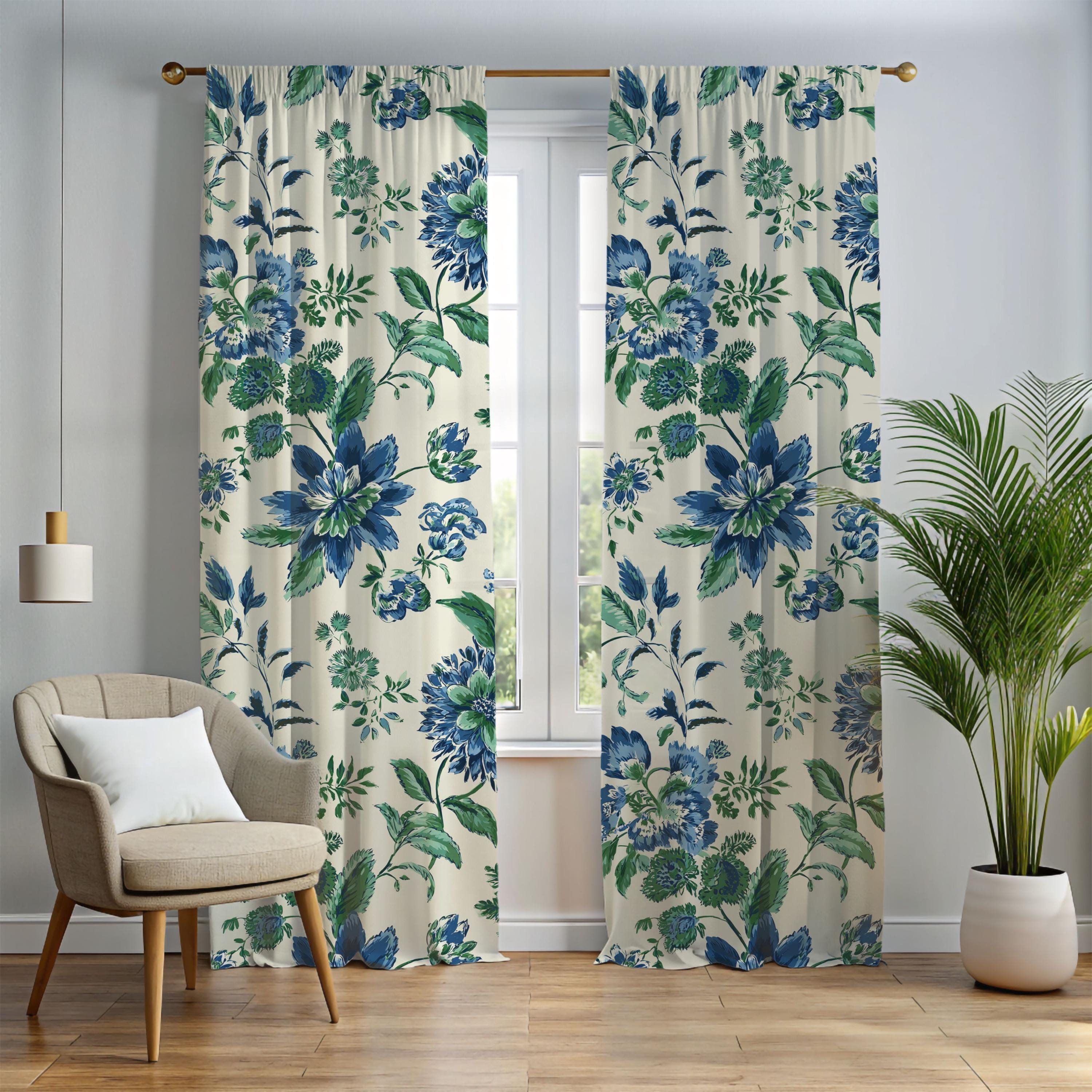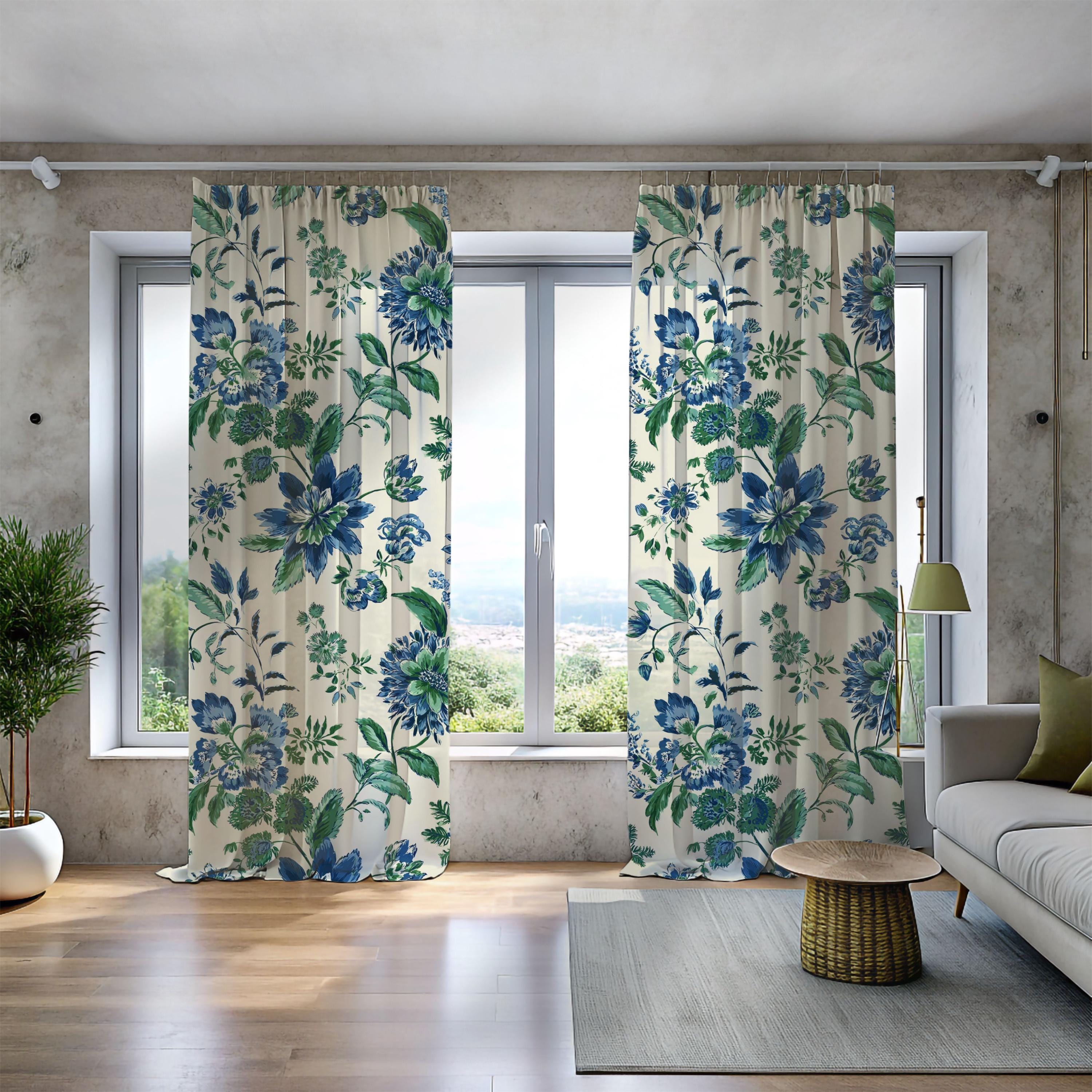 Imagine a mural-scale drapery that elevates your interior aesthetic beyond traditional patterns. Each panel features a singular, oversized floral composition, expertly placed off-center to create a dramatic "Mural Window" effect. This design commands attention and invites a sense of artistic sophistication into your home. Whether you want to diffuse natural light with sheer fabrics or block out light for privacy and rest with blackout options, these curtains are versatile and luxurious.